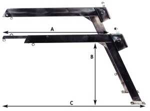 | Abmessungen A | (min) 1080 mm (max) 1370 mm | (min) 1220 mm (max) 1800 mm | (min) 1340 mm (max) 2470 mm |