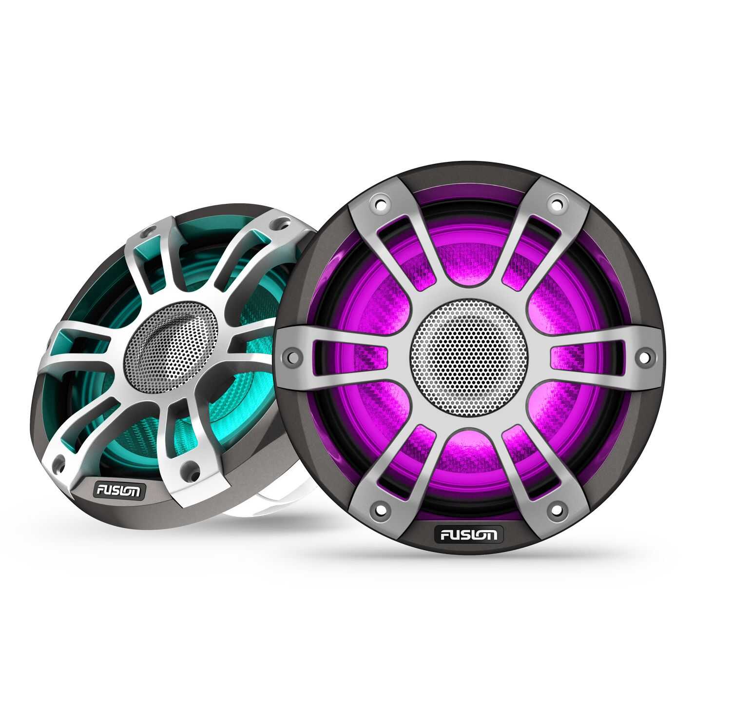 Die sportlichen Fusion Signature Series 3i Sports Marine Lautsprecher sind mit der branchenweit ersten CRGBW-LED-Beleuchtung ausgestattet, die Ihr Schiff mit einem noch nie dagewesenen Farbspektrum beleuchtet, um die Stimmung zu verbessern oder die Party mit einer hochwertigen, stimmungsvollen Beleuchtung zu beginnen.