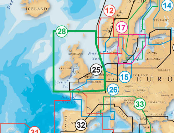 Kartenabdeckung der Navionics Platinum+ XL3 28P+ elektronische Seekarte UK, Ireland & Holland: