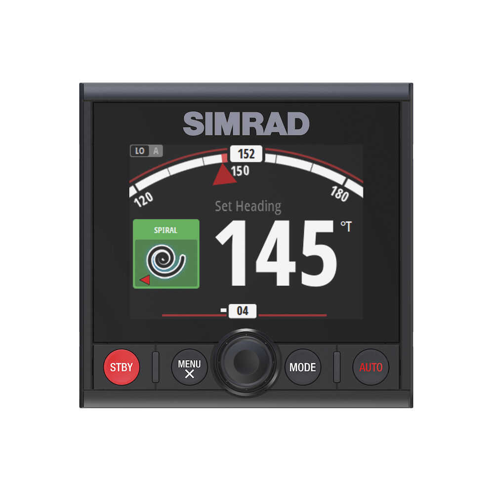 Der Simrad AP44-Autopilot-Controller kombiniert die Simrad Continuum-Lenkungstechnologie mit einem Farbdisplay, intuitiven Drehschaltern und Knöpfen sowie einem modernen Glas-Styling des Steuerstands. Befreien Sie Ihre Hände vom Steuer, kreuzen Sie bequem und entdecken Sie neue Wege, um nach Fischen zu suchen; dieser spezielle Controller bietet einfachen Zugang zu automatischen Wendemustern, No-Drift-Lenkung, Tiefenkonturverfolgung und anderen fortschrittlichen Pilotenfunktionen. Schließen Sie Ihren Kartenplotter an, um Wegpunkte und Routennavigation hinzuzufügen, und genießen Sie die vollständige Autopilot-Steuerung über kompatible Simrad-Displays.